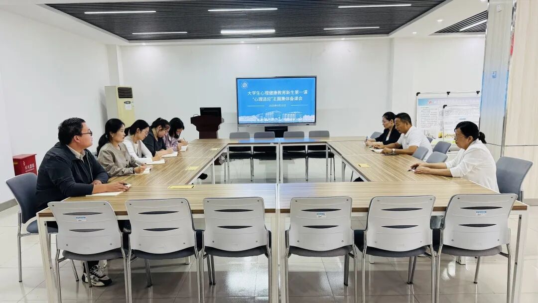 为全面提升新生心理适应能力,筑牢大学生心理健康教育第一道防线,9月18日下午,我校在梁园校区学生事务中心召开2025年秋季学期“心理健康教育第一课”集体备课会。学生处副处长、大学生心理健康教育中心副主任卢剑平、心理健康教育教研室全体教师、辅导员代表参加会议,共同研讨如何上好这堂面向新生的“人生必修课”。