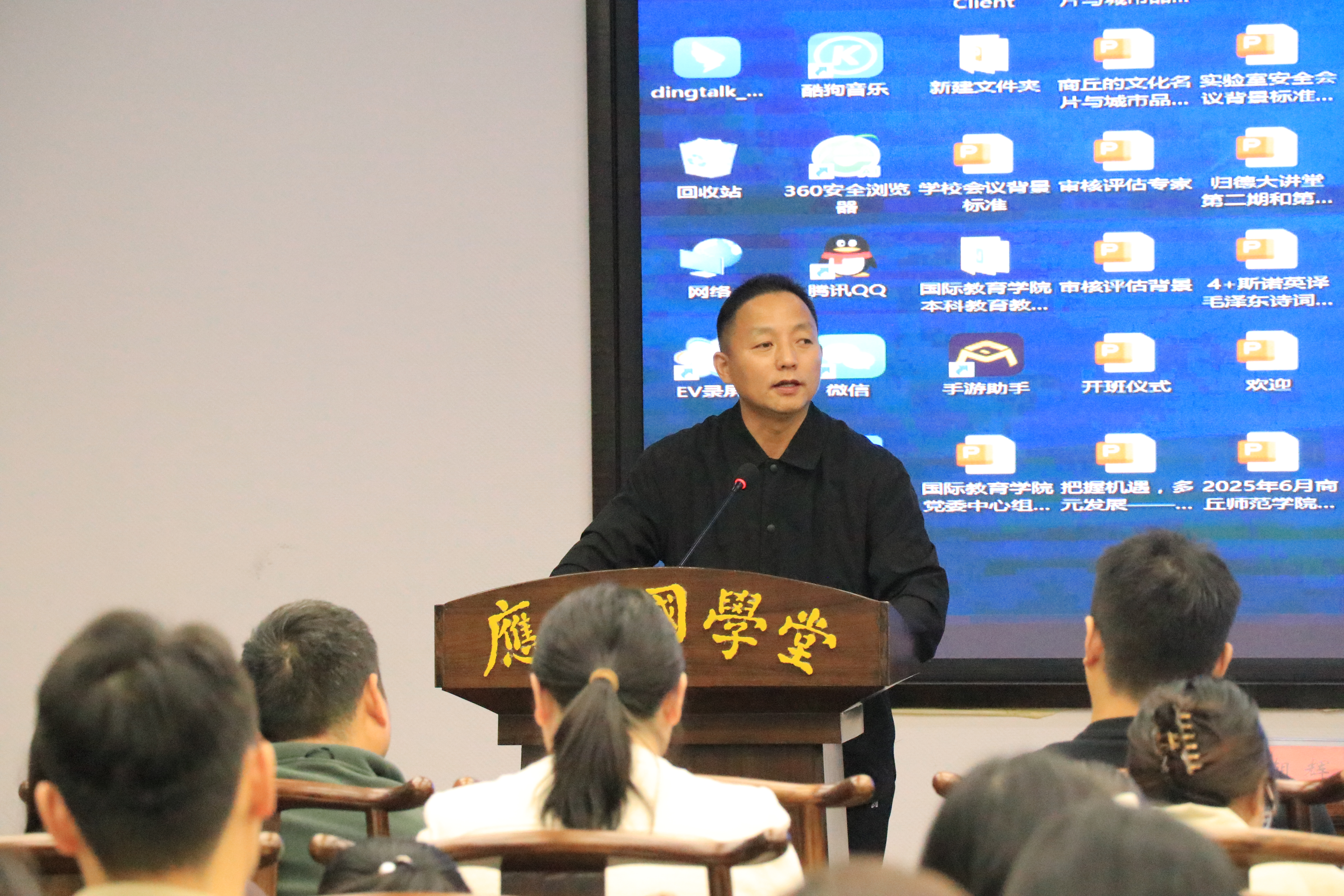 10月11日上午,学生处(大学生心理健康教育中心)、国际教育学院(归德书院)特邀新乡医学院第一附属医院副院长张朝辉教授开展以《洞察心灵 为梦出发》为主题的心理健康专题讲座。学生处副处长、大学生心理健康教育中心副主任卢剑平、国际教育学院班子成员、部分学院党委副书记、心理联络专员、国际教育学院学生代表参加活动。讲座由国际教育学院副院长杨静主持。
