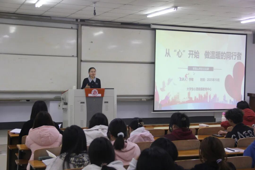 李敏在培训中明确了心理委员的角色定位与工作职责,进一步强化了大家的责任意识。她围绕能力提升,系统讲解了心理危机识别与应对等专业知识,并传授了实用的朋辈辅导技巧,以增强心理委员的实际助人能力。最后,李敏介绍了学校心理咨询的预约途径,并温馨提醒心理委员在关怀他人的同时,也要关注自身心理健康,善用专业支持资源。