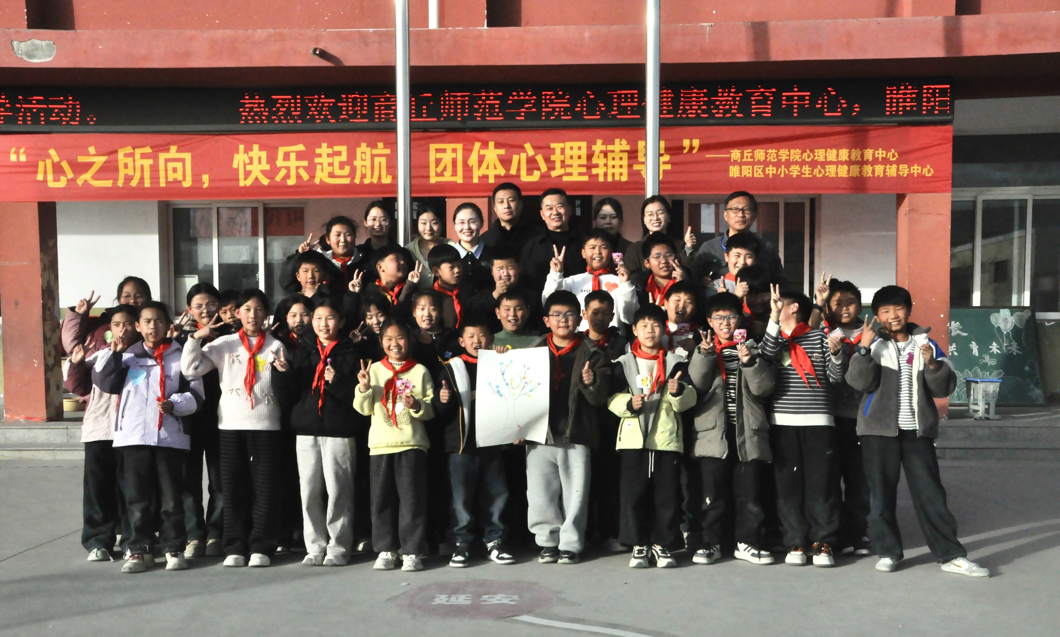 为深化校地合作,积极服务地方心理健康教育,11月27日下午,我校学生处(心理健康教育中心)李敏博士、侯晓晓老师赴睢阳区包公庙乡中华楼小学,为四年级学生开展了以“心之所向,快乐启航”为主题的团体心理辅导活动。
