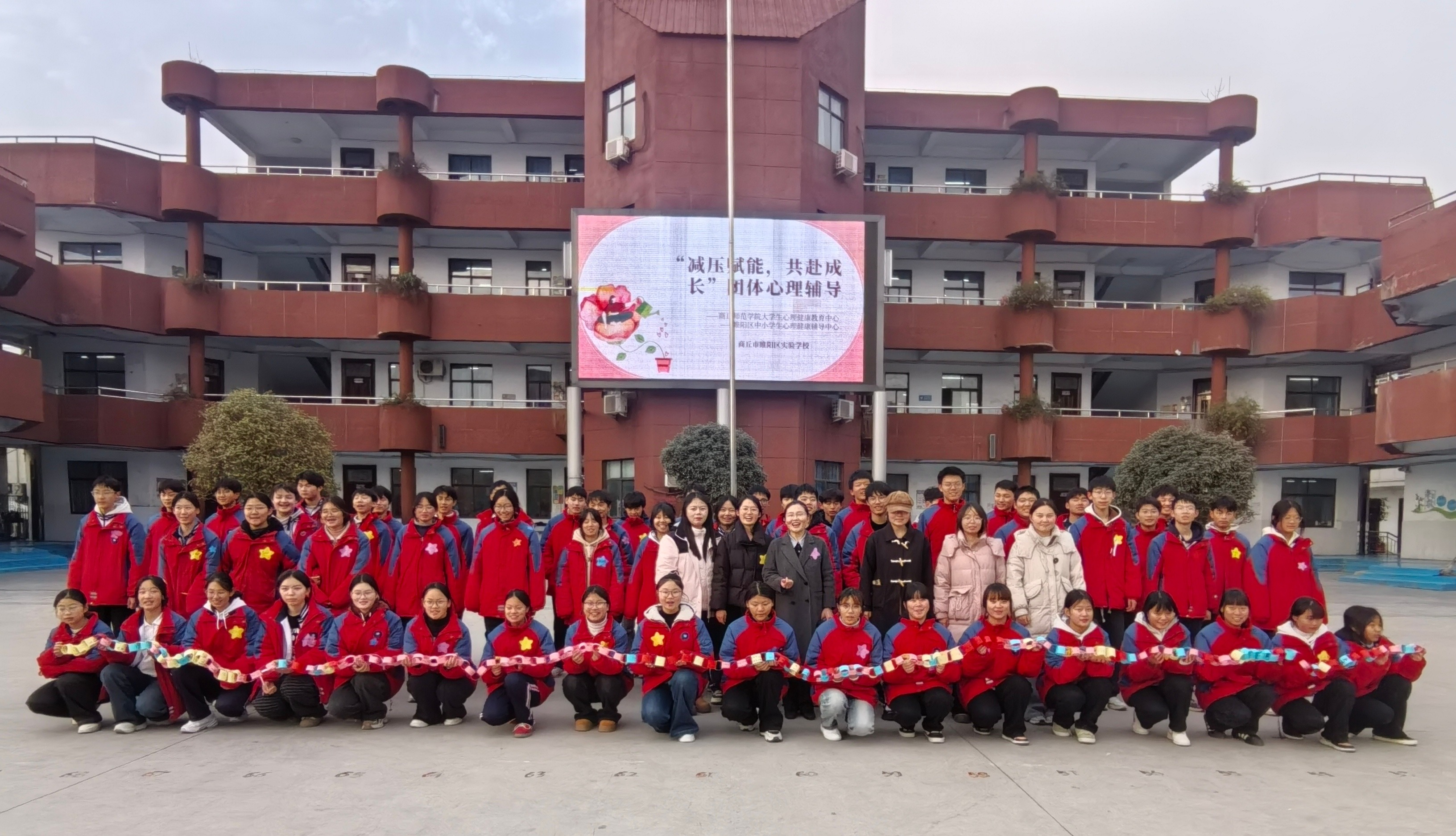 为持续深化校地合作,以专业知识服务地方基础教育,护航青少年心理健康成长。12月26日,我校学生处(心理健康教育中心)李敏博士、侯晓晓老师赴商丘市睢阳区实验学校为九年级毕业生量身打造了一场以“减压赋能,共赴成长”为主题的团体心理辅导活动,旨在通过专业、系统的心理干预,帮助学生缓解学业压力,提升心理韧性,以积极心态迎接成长挑战。